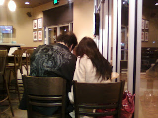 I'm sitting here at Starbucks, sipping a vanilla latte, when in comes a couple and sits down to talk loudly, laugh loudly, and watch a video on their laptop loudly. No headphones. Rude. Coffee shop etiquette please!